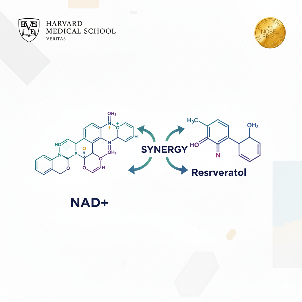 trans-resveratrol activates sirtuin proteins, your body's "longevity switches", while NAD+ provides the fuel. This combination increases cellular energy production by 70% more than NAD+ alone.
